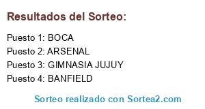 Lista de participantes: BOCA, BANFIELD, GIMNASIA JUJUY, ARSENAL.