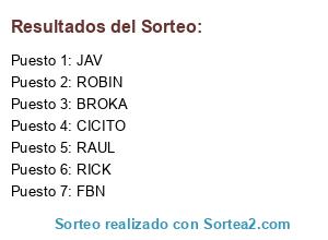 Lista de participantes: RICK, FBN, JAV, CICITO, ROBIN, BROKA, RAUL.