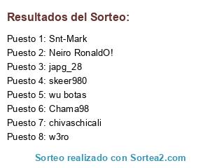 Lista de participantes: Snt-Mark, w3ro, chivaschicali, skeer980, wu botas, Chama98, Neiro RonaldO!, japg_28.