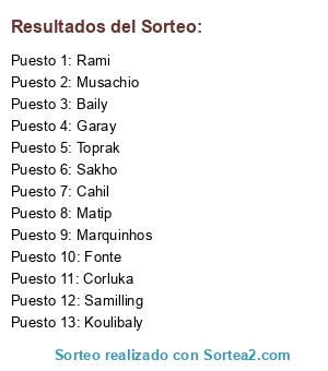 Lista de participantes: Koulibaly, Musachio, Garay, Toprak, Fonte, Samilling, Baily, Matip, Cahil, Rami, Corluka, Marquinhos, Sakho.