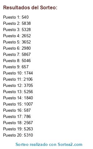 Resultados del sorteo: