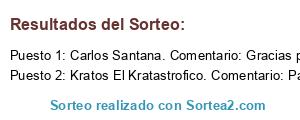 - Ganador 1: Carlos Santana. Comentario: Gracias por la caridad en los tiempos de crisis, espero que me toque algo xd participo por una tarjeta del Amazonas (Amazon xd, jaj que mal chiste)