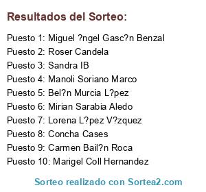 Lista de participantes: Ana Ayuso, Mayte Soriano, M Fuensanta Rives Illan, Fanny Gonzalez Garcia, Salud Zaragoza Latorre, Benjam?n Torres Maz?n, Noelia Mata Clemente, Montse Bernabeu Zaragoza, Nieves Gimenez, Jonatan Rodriguez Girona, Feli Llor Ferrandez, Mayte M Sgroi, Laura Valero, Maribel Rocamora Menarguez, Inmaculada Rodriguez Vera, Mary Chuecos Cartagena, Mario Martinez Pertusa, Maricarmen P?rez Canales, Clara Isabel Garcia Vegara, Esther L?pez, Dana Maria Berheci, Josefina Barhur, Mari Carmen Lorenzo Garcia, Maria Parra, Mara Monje Rodriguez, Carmen Butr?n Cayuelas, Manuel Girona Garc?a, Jose Manuel Sarmiento Jare?o, Maite Mediato Litran, Susana Ayuso, Enrique Lazaro Bailen, Marisol Gonzalez Moreno, Tomas Albaladejo Perez, Juana Mar?a Agull? Rodenas, Conchi Macia, Ver?nica Ma?ogil Minguez, Veronica Rech Lorenzo, Rosa Rodriguez Filiu, Norberta Castillo Martinez, Mari Carmen Mateos, Popi Juan Garcia, Chari Garcia Cases, Reyes Rodriguez, Ram?n Mart?nez Egio, Reyes Martinez, Susi Blanc, Mar?a Ro Mi, Maria Jose Ruiz Rodriguez, Diego Yque Masda, M Angeles Pe?alver Box, Banderas Campanario, Fortu Arce Fructuoso, Ana Belen Macia, Irene Pomares Jimenez, Ruben Amoros Vera, Fernando Ors Esteban, Fini Garcia, Patricia Almarcha, Cristina Ruiz Laurikainen, Rosal?a CG, Arantxa Quiles Gomez, Jos? Antonio P?rez Sequera, Mario Navarro Rodriguez, Jose Manuel Ros, Manoli Juarez Huertas, Mariola Artacho Garcia, Juan Carlos Montesinos Gea, Bel?n Murcia L?pez, Liane Danielle Stratton, Mari Martinez Tomas, Manuela Garc?a, Maria Asuncion Sansano, Raquel Menacho Hernandez, Mj Ch, Nuria Culi??ez Pascual, Miguel Angel Somalo Gomez, Mario S?nchez Monge, Raqui Gil, Antonio Guillam?n Ruiz, Joni Arens, Monica Rocamora Trives, Judo Almoradi, Eduardo Vidal Mart?nez, Loli Serna Berna, Ilu Grau, Manuel Cabrera Campillo, Rosa Rosae, Mar Pascual Galvez, Marta Mart?nez Garc?a, Cristina Santo Sala, Victoria Mazon, Rosario Hernandez, Nano Ruano, Mery Gamez, Angela Rufete Rodriguez, Eduardo Macia Cayuelas, Jose Manuel Gimenez Guillen, Javier Ba??n, Hamburguesa Vegetal, Rosa Mora Martinez, Maite Murcia, Mari Loli Garcia Lacal, Juana Martinez Lorenzo, Alex Tihova, Emigdio Martinez Nolasco, Rosa Mar?a L?pez, Cristina Garcia Vidal, Naiara Marroqui Ferrandez, Matt Thornton, Juani Rey, Sabina Lorenzo Dols, Paqui Amor?s Campillo, Nieves G?mez G?mez, Ainhoa Garro Alcaide, Jose Antonio Rodriguez, Encarnita Gil Porcel, Sandra Martinez Martinez, Vanessa Amat Nerja, Maria Isabel Gasc?n Ruiz, Macu Huertas Gil, Susana Callealta Simon, Rosa Barbera, Sarita PG, Susana Malaga, Tere Albero, Ana Bel?n Sim?n C?mara, Marisol Castillo Lopez, Jmma Marro, Yola Gomez, Fran Grau, Manoli Ortu?o Rodr?guez, Ana Belen Valero Marco, Eusebio Hurtado De Boj, Pilar Guill?n, Lucre Juan Gil, Julia Zaragoza, Rafa Crespo, Cristina Ruiz Alcocer, Esther Saorin Perona, Daine Vaiciuniene Lukosiute, Maria Jose Martinez Perez, Paquit?n Heralbert, Mado Garcia Fuentes, Sandra Cabrera Pardines, Carmen Garc?a Pardo, Robert Perales Murcia, Gerardo Ortu?o Molina, Roc?o Mart?nez Rinardo, Pedro Antonio Marcos Dols, Jose Andres Molina Robles, Concha Cases, Gloria Gomez Lopez, Jose Julian Lopez Rodriguez, Elisa Vidali, Angel Arag?n G?mez, Manuel Zaragoza, Elena Cerezo Montes, David Montesinos Arenas, Antonio Meseguer, Esther Rico Perez, Rosa Cabra Urdiales, Manuel Antonio Diaz Lopez, Francisco Gomez, Alicia Mart?nez Espinosa, Uhli Cases Garcia, Mari Roca G?mez, Mar?a Del Pilar P?rez Garc?a, Pepe Madercox, Ana S?ez Coll, Alicia Ruiz Perez, Carolina Molina Rodriguez, M Rosario Gonzalez Ruso Rosa, Manuel Mench?n, Alejandro Valero Dur?n, Tom?s Pastor Mora, Raquel Parres Cabezuelo, Manuel Lorca Cordoba, Elia Amoros Sampere, Fini Lledo, Rosa Maria Tornero Parodi, Karina Ponce, Francisco Jos? Maci? Manresa, Pepe Gomez Garcia, Joaqu?n Pertusa, Santi Pacheco Lopez, Sandra Ferrandez, David Ramirez Sanchez, Caridad Bailen Gomez, Sonia Ballester Garcia, Laia Blasco Vila, Desir? Espinosa L?pez, Marian Parres Bail?n, Sonia Rodriguez Fabra, Maria Jose Sala M?s, Isa Hernandez, Jose Tomas Marin Serna, Rosa Baeza, Encarna Martinez, Isabel Ferrer Ruiz, Jesi Hector Garcia Salcedo, Antimo Reina Pastor, Carlos Vileilla, Brigi Ferrer Lucas, Ricardo Meseguer Navarro, Constancia Ca?izares Mira, Anni Grandt, Montse Pertusa, Matilde Yo Yo, Mariola Martin Sierras, Ivana Martinez Rico, Victor Soler Galvez, Paula Miralles, Paloma Garcia Garcia, Paco Rubio, Manoly Perez, Inmaculada Cases Gomez, Francisco Manuel Perez Gomez, Veronica Benito Bermejo, Angel Garcia, Lola Balaguer L?pez, Jose Vicente Navarro Hernandez, Juan Carlos Ramon Manresa, Ana Ip, Cristina S?nchez Ruiz, Jos? ? Gar Hur, Pe?alver Sar, Merche Soler, Huertana Rosas, Daniel De la Rue, Maria Angeles Peiro Zambudio, Fred ML, Alberto Manuel Martinez Hurtado, Mariola Vazquez, Ana Garcia Hernandez, Ana Morante, Conchi Lopez Perez, Jesus Martinez Soriano, Anaiis Sarabia Marin, Sergio Reina Pastor, Celeste Sanchez Martinez, Elsa Seva Garc?a, Ana Bolena, Loles Melgarejo Gil, Mar?a DiMi, Beatriz Alberca, Ruben Andreu Gomez, Paco Martin Grupo Skay, Blanca Gallego, Miguel Seva Pedraza, Jose Manuel Latorre Redondo, Hostal El Retiro, Anika Amparo Power, Ana Aguilar, Mari Paqui Garcia Alarcon, Ivan Aix Gil, Eva Maria Gimenez Molina, Puri Martinez Ruiz, Rosa Roca Perales, Maria Jos? Rodriguez Reina, Maria Ruiz Garcia, Mari Reyes Egea, Francisco Javier Martinez, Jose Antonio Gonzalez Ferrandez, Rom?n Mart?nez L?pez, Raquel Mart?nez Hurtado, Rosana Ortiz, Antonio Andreo Ramirez, Rocio Rodriguez Vargas, Miriam Coves Hernandez, ?ngela Lopt, Carmen Campillo Bascu?ana, Yolanda Alarcon, Marisu Moya, Elena Abenojar, Silvia Iglesias, Raquel Rodes Martinez, Isabel Soto Perez, Victoria Fedorova, Libby Po, Cg Alicia, Fanny Rodriguez Miralles, Manuel Rodes Martinez, Ana Maria Canales Murcia, Gutierrez Eva, Alejandro Manzano Jover, Ana Isabel Jimenez, Abraham Costa Fuentes, Ana Pamies Manrique, Jose Antonio Miravete G?mez, Laura Sanchez, Pilar Lopez Arenas, Ana Belen Cha