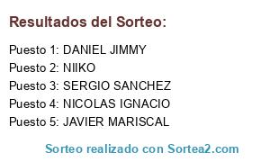 Lista de participantes: NICOLAS IGNACIO, NIIKO, JAVIER MARISCAL, SERGIO SANCHEZ, DANIEL JIMMY.