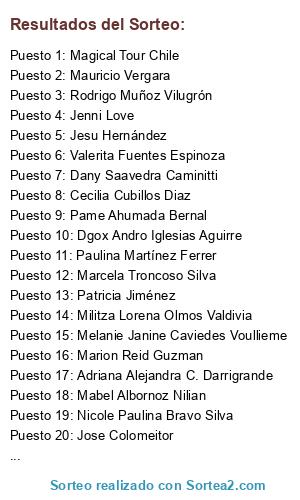 Resultados Sorteo 30 guías concurso en Facebook Chile es TUYO