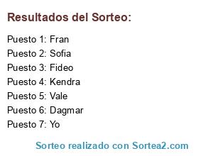 Lista de participantes: Fran, Fideo, Kendra, Dagmar, Sofia, Vale, Yo.