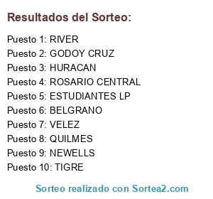 Lista de participantes: GODOY CRUZ, ESTUDIANTES LP, BELGRANO, HURACAN, ROSARIO CENTRAL, NEWELLS, TIGRE, QUILMES, VELEZ, RIVER.