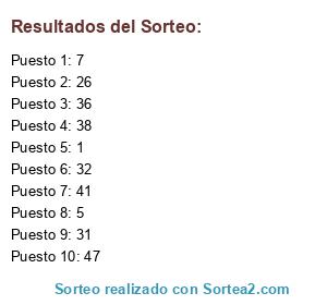 Resultados del sorteo:
