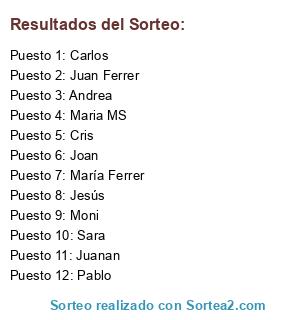 Resultados del sorteo: