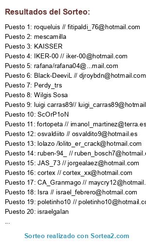 - Puesto 28: xexu23 -- Sergiroger@hotmail.com