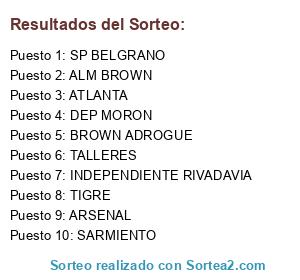 Lista de participantes: ALM BROWN, ARSENAL, TIGRE, INDEPENDIENTE RIVADAVIA, BROWN ADROGUE, TALLERES, DEP MORON, SP BELGRANO, ATLANTA, SARMIENTO.