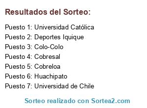 Lista de participantes: Cobresal, Deportes Iquique, Huachipato, Universidad Católica, Cobreloa, Colo-Colo, Universidad de Chile, .
