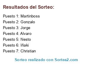 Lista de participantes: Jorge, Nesto, Christian, Gonzalo, Iñaki, Martinboss, Alvaro.