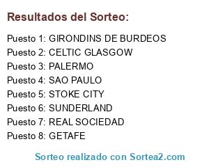 Lista de participantes: GIRONDINS DE BURDEOS, REAL SOCIEDAD, PALERMO, SAO PAULO, SUNDERLAND, STOKE CITY, GETAFE, CELTIC GLASGOW.