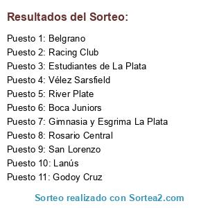 Lista de participantes: Belgrano, Lanús, Racing Club, River Plate, San Lorenzo, Vélez Sarsfield, Boca Juniors, Estudiantes de La Plata, Gimnasia y Esgrima La Plata, Godoy Cruz, Rosario Central.