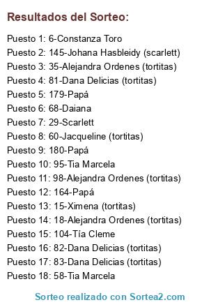 Lista de participantes: 14-Franco Saul (mc.gregor28), 28-Franco Saul (mc.gregor28), 6-Constanza Toro, 21-Constanza Toro, 3-Gene, 7-Gene, 8-Gene, 9-Gene, 13-Gene, 133-Kathy Valderrama, 134-Kathy Valderrama, 135-Kathy Valderrama, 136-Kathy Valderrama, 137-Kathy Valderrama, 43-Maiyetxy, 24-Maiyetxy, 88-Maiyetxy, 25-Benja, 75-Benja, 2-Conny, 16-Conny, 22-Conny, 54-Conny, 55-Conny, 53-Emilie bb, 101-Tía Cleme, 102-Tía Cleme, 103-Tía Cleme, 104-Tía Cleme, 105-Tía Cleme, 106-Tía Cleme, 107-Tía Cleme, 108-Tía Cleme, 109-Tía Cleme, 110-Tía Cleme, 32-Mama lissy, 11-Mama lissy, 1-Jose, 5-Jose, 20-Jose, 69-Fabiola Diaz (tortitas), 113-Fabiola Diaz (tortitas), 128-Fabiola Diaz (tortitas), 167-Rita Jerez (tortitas), 168-Rita Jerez (tortitas), 81-Dana Delicias (tortitas), 82-Dana Delicias (tortitas), 83-Dana Delicias (tortitas), 84-Dana Delicias (tortitas), 85-Dana Delicias (tortitas), 18-Alejandra Ordenes (tortitas), 35-Alejandra Ordenes (tortitas), 98-Alejandra Ordenes (tortitas), 160-Alejandra Ordenes (tortitas), 170-Alejandra Ordenes (tortitas), 151-Angela Galleguillos (tortitas), 152-Angela Galleguillos (tortitas), 153-Angela Galleguillos (tortitas), 154-Angela Galleguillos (tortitas), 155-Angela Galleguillos (tortitas), 15-Ximena (tortitas), 52-Ximena (tortitas), 59-Ximena (tortitas), 48-Ximena (tortitas), 49-Ximena (tortitas), 10-Mamá, 17-Mamá, 26-Mamá, 27-Mamá, 34-Mamá, 42-Mamá, 61-Mamá, 67-Mamá, 121-Mamá, 125-Mamá, 147-Mamá, 156-Mamá, 185-Mamá, 200-Mamá, 184-Mamá, 190-Lissy, 191-Lissy, 192-Lissy, 193-Lissy, 194-Lissy, 195-Lissy, 196-Lissy, 197-Lissy, 198-Lissy, 199-Lissy, 62-Nancy (tortitas), 63-Nancy (tortitas), 64-Nancy (tortitas), 65-Nancy (tortitas), 66-Nancy (tortitas), 76-Kote (cony), 77-Kote (cony), 78-Kote (cony), 79-Kote (cony), 80-Kote (cony), 161-Papá, 162-Papá, 163-Papá, 164-Papá, 165-Papá, 166-Papá, 171-Papá, 172-Papá, 173-Papá, 174-Papá, 175-Papá, 176-Papá, 177-Papá, 178-Papá, 179-Papá, 180-Papá, 114-Papá, 115-Papá, 116-Papá, 117-Papá, 118-Papá, 119-Papá, 120-Papá, 4-Papá, 12-Papá, 23-Papá, 33-Papá, 148-Papá, 149-Papá, 150-Papá, 45-Sofía Neira (fabi tortitas), 126-Sofía Neira (fabi tortitas), 99-Sra. Rebe (tortitas), 100-Sra. Rebe (tortitas), 30-Vivi Valdes (tortitas), 39-Vivi Valdes (tortitas), 169-Vivi Valdes (tortitas), 122-Tia diana, 123-Tia diana, 124-Tia diana, 141-Johana Hasbleidy (scarlett), 142-Johana Hasbleidy (scarlett), 143-Johana Hasbleidy (scarlett), 144-Johana Hasbleidy (scarlett), 145-Johana Hasbleidy (scarlett), 146-Johana Hasbleidy (scarlett), 91-Tia Marcela, 92-Tia Marcela, 93-Tia Marcela, 94-Tia Marcela, 95-Tia Marcela, 96-Tia Marcela, 97-Tia Marcela, 56-Tia Marcela, 57-Tia Marcela, 58-Tia Marcela, 19-Sinai, 36-Daiana, 68-Daiana, 37-Jacqueline (tortitas), 50-Jacqueline (tortitas), 60-Jacqueline (tortitas), 86-Jacqueline (tortitas), 87-Jacqueline (tortitas), 40-Jacqueline (tortitas), 138-Mirta Saavedra (Tortitas), 139-Mirta Saavedra (Tortitas), 140-Mirta Saavedra (Tortitas), 181-Maria Ilse (tortitas), 182-Maria Ilse (tortitas), 183-Maria Ilse (tortitas), 31-Claudia Eliana (tortitas), 41-Claudia Eliana (tortitas), 51-Claudia Eliana (tortitas), 29-Scarlett, 70-Scarlett, 74-Scarlett, 111-Scarlett, 112-Scarlett, 127-Scarlett, 186-Scarlett, 187-Scarlett, 188-Scarlett, 189-Scarlett, 157-Profe Ivita, 158-Profe Ivita, 159-Profe Ivita, 71-Maria (Tortitas), 72-Maria (Tortitas), 129-Maria (Tortitas), 73-Ana Maria (tortitas), 38-Ana Maria (tortitas), 89-Ana Maria (tortitas), 130-Ana Maria (tortitas), 44-Zayda (tortitas), 90-Zayda (tortitas), 131-Zayda (tortitas), 47-Gaby Jimenez, 132-Gaby Jimenez, 46-Emilie bb.
