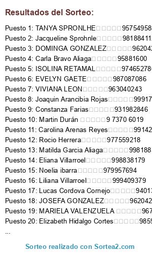 Lista de participantes: Carolina Arenas Reyes, Carolina Arenas Reyes, Carolina Arenas Reyes, Carolina Arenas Reyes, Carolina Arenas Reyes, Rocio Navarro, Rocio Navarro, Rocio Navarro, Rocio Navarro, Rocio Navarro, Gloria Valdivia, Gloria Valdivia, Gloria Valdivia, Gloria Valdivia, Gloria Valdivia, Constanza Farias, Constanza Farias, Constanza Farias, Constanza Farias, Constanza Farias, Constanza Farias, Constanza Farias, Constanza Farias, Constanza Farias, Constanza Farias, Constanza Farias, Constanza Farias, Constanza Farias, Constanza Farias, Constanza Farias, Jacqueline Sprohnle, Jacqueline Sprohnle, Jacqueline Sprohnle, Jacqueline Sprohnle, Jacqueline Sprohnle, Jacqueline Sprohnle, Jacqueline Sprohnle, Jacqueline Sprohnle, Jacqueline Sprohnle, Jacqueline Sprohnle, Joaquin Arancibia Rojas, Joaquin Arancibia Rojas, Joaquin Arancibia Rojas, Joaquin Arancibia Rojas, Joaquin Arancibia Rojas, Joaquin Arancibia Rojas, Joaquin Arancibia Rojas, Joaquin Arancibia Rojas, Joaquin Arancibia Rojas, Joaquin Arancibia Rojas, Cristobal Arancibia Rojas, Cristobal Arancibia Rojas, Cristobal Arancibia Rojas, Cristobal Arancibia Rojas, Cristobal Arancibia Rojas, Cristobal Arancibia Rojas, Cristobal Arancibia Rojas, Cristobal Arancibia Rojas, Cristobal Arancibia Rojas, Cristobal Arancibia Rojas, Amelia Moraga, Matias Moraga, Antonio Soto Hidalgo, Gonzalo Aliaga Soto, Lucia vasquez Soto, Aurora Vasquez Soto, Elizabeth Hidalgo Cortes, Matias Clemente Durán Contardo, Matias Clemente Durán Contardo, Matias Clemente Durán Contardo, Matias Clemente Durán Contardo, Matias Clemente Durán Contardo, Matias Clemente Durán Contardo, Matias Clemente Durán Contardo, Matias Clemente Durán Contardo, Matias Clemente Durán Contardo, Matias Clemente Durán Contardo, Angela Quijada Gutiérrez, Angela Quijada Gutiérrez, Angela Quijada Gutiérrez, Angela Quijada Gutiérrez, Angela Quijada Gutiérrez, Angela Quijada Gutiérrez, Angela Quijada Gutiérrez, Angela Quijada Gutiérrez, Angela Quijada Gutiérrez, Angela Quijada Gutiérrez, Angela Quijada Gutiérrez, Angela Quijada Gutiérrez, Angela Quijada Gutiérrez, Angela Quijada Gutiérrez, Angela Quijada Gutiérrez, Angela Quijada Gutiérrez, Angela Quijada Gutiérrez, Angela Quijada Gutiérrez, Angela Quijada Gutiérrez, Angela Quijada Gutiérrez, Luis Aliaga, Carla Bravo Aliaga, Marcela Cornejo, Lucas Cordova Cornejo, Lucas Cordova Cornejo, Renato Cordova Cornejo, Renato Cordova Cornejo, Eliana Villarroel, Eliana Villarroel, Sara Bravo Aliaga, Carol Rivas, Eduardo González, Luciano González, Eliana Villarroel, Eliana Villarroel, Eliana Villarroel, Luis Suárez Sáez, Eliana Villarroel, Eliana Villarroel, Eliana Villarroel, Eliana Villarroel, Eliana Villarroel, Eliana Villarroel, Eliana Villarroel, Eliana Villarroel, Maida Suárez Bravo, Eliana Villarroel, Eliana Villarroel, Eliana Villarroel, Eliana Villarroel, Eliana Villarroel, Eliana Villarroel, Eliana Villarroel, José Tomás Gajardo Suárez, Eliana Villarroel, Eliana Villarroel, Eliana Villarroel, Eliana Villarroel, Eliana Villarroel, Eliana Villarroel, Eliana Villarroel, Eliana Villarroel, Eliana Villarroel, Eliana Villarroel, Eliana Villarroel, Eliana Villarroel, Eliana Villarroel, Eliana Villarroel, Eliana Villarroel, Eliana Villarroel, Eliana Villarroel, Eliana Villarroel, Eliana Villarroel, Eliana Villarroel, Eliana Villarroel, Eliana Villarroel, Eliana Villarroel, Eliana Villarroel, Eliana Villarroel, Eliana Villarroel, Eliana Villarroel, Eliana Villarroel, Eliana Villarroel, Eliana Villarroel, Eliana Villarroel, Rocio Herrera, Rocio Herrera, Rocio Herrera, Leonor Arenas, Leonor Arenas, Leonor Arenas, Leonor Arenas, Leonor Arenas, Leonor Arenas, Leonor Arenas, Trinidad Arenas, Trinidad Arenas, Trinidad Arenas, Trinidad Arenas, Trinidad Arenas, Trinidad Arenas, Trinidad Arenas, Sofia Arenas, Sofia Arenas, Liliana Villarroel, Liliana Villarroel, Jaime Arenas, Jaime Arenas, Marco Espinoza, Marco Espinoza, Marco Espinoza, Marco Espinoza, Marco Espinoza, Noelia ibarra, Noelia ibarra, Noelia ibarra, Noelia ibarra, Noelia ibarra, Noelia ibarra, Noelia ibarra, Noelia ibarra, Noelia ibarra, Noelia ibarra, Noelia ibarra, Noelia ibarra, Noelia ibarra, Noelia ibarra, Noelia ibarra, Noelia ibarra, Noelia ibarra, Noelia ibarra, Noelia ibarra, Noelia ibarra, Renato Becerra Ruz, Renato Becerra Ruz, Renato Becerra Ruz, Renato Becerra Ruz, Renato Becerra Ruz, Agustina Montes, Agustina Montes, Agustina Montes, Matias Montes, Matias Montes, Gonzalo Aliaga Soto, Gonzalo Aliaga Soto, Gonzalo Aliaga Soto, Gonzalo Aliaga Soto, Gonzalo Aliaga Soto, Alonso Tobar Orellana, Alonso Tobar Orellana, Alonso Tobar Orellana, Alonso Tobar Orellana, Alonso Tobar Orellana, Antonia Tobar Orellana, Antonia Tobar Orellana, Antonia Tobar Orellana, Antonia Tobar Orellana, Antonia Tobar Orellana, Rocio Herrera, Rocio Herrera, Rocio Herrera.