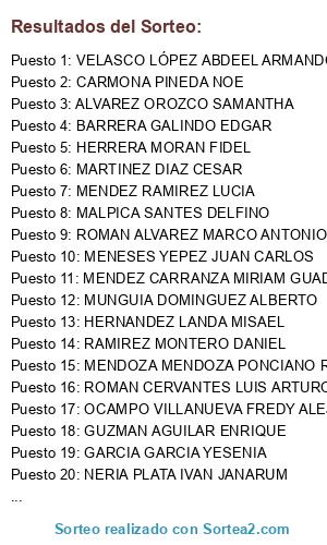 Resultados del sorteo: