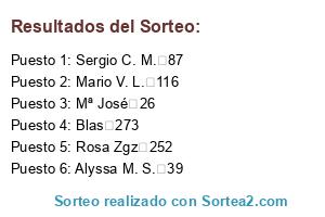 Este sorteo ha sido certificado por Sortea2. Sortea2 garantiza que: