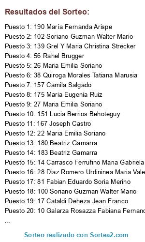 Resultados del sorteo: