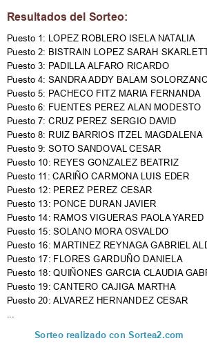 - Puesto 38: HERNANDEZ ESPINOSA DANIEL RODRIGO