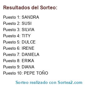 Lista de participantes: IRENE, ERIKA, DANIELA, TITY, DULCE, DIANA, SILVIA, SUSI, SANDRA, PEPE TOÑO.