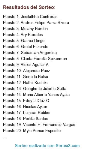 Lista de participantes: Geoghette Juliette Sutta, Nicolas Aylan, Hierro-Minguez Raquel, Fabiola Lizarraga, Gene la Bolso, Celeste Cano, Clarita Fiorella Spikerman, Maria Jimena Suave, Denise Sisniega del Angel, Eddy J Díaz O, Gretel Elizondo, Andres Felipe Parra Rivera, Kufa Cja Dj, Perlita Santos, Vicente E. Fernandez Vargas, Zhindy Os Lo, Miguel Salvador Solis Juarez, Mario Alberto Yanes Ayala, Giselle De Oliveira, Myle Ponce Esposito, Patri Busto, Luinexii Robles, Haruka Rin Yamaski Yui, Agus Nuñez, Chaaparritaa Abasta, Melany Bordon, Jesikithha Contreras, Angela Luna, Nathii Kuchikii, Lucy Iraima, Joel Echevarria Zavaleta, Gatrox Dingo, Riicardo Ferreyra, Anita Escobedo, Gustavo López Ruíz, Alexis Aguilar A, Sebastian Angerosa, Consuelo Melina Flores, Luna Ponce Leon, Alan Palacio, Ary Paredes, Alejandra Paez, Perdomo Marjudith, Pamela Nicole Concepcion Ortiz.