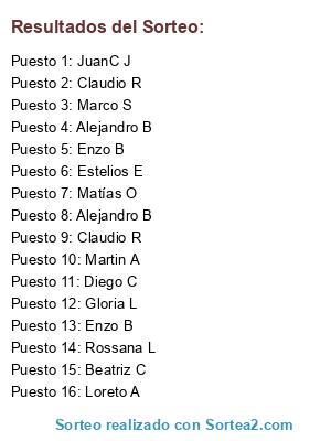 Resultados del sorteo: