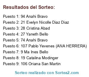 Lista de participantes: 1 Elena Silva España, 2 Ma Fernanda Hohmann Abad, 3 Carol Beatriz Mora Ben-Hour, 4 Ana herrera #991711705, 5 Francisco Hohmann Rios, 6 Karla Santana Gutierrez, 7 David Carvajal Leiva, 8 Ma Fernanda Hohmann Abad, 9 Ma Ines Bello, 10 Yaneth Bello, 11 Yaneth Bello, 12 Astrid Keim Altamirano, 13 David Carvajal Leiva, 14 Ma Fernanda Hohmann Abad, 15 Elena Silva España, 16 Daniela Cañulef Asenjo, 17 Olita Oyarzo Silva, 18 Yaneth Bello, 19 Catalina Modinger, 20 Karla Santana Gutierrez, 21 Evelyn Nicolle Diaz Diaz, 22 Ma Fernanda Hohmann Abad, 23 Olita Oyarzo Silva, 24 Francisco Hohmann Rios, 25 Ma Fernanda Hohmann Abad, 26 Javiera Modinger, 27 Yaneth Bello, 28 Cristina Abad, 29 Cristina Abad, 30 Daniela Cañulef Asenjo, 31 Daniela Cañulef Asenjo, 32 Viviana Calderon, 33 Tita (tati), 34 Elena Silva España, 35 Priscilla Delgado Obando, 36 Viviana Calderon, 37 Tay (tati), 38 Claudia Bravo, 39 Papo (tati), 40 Ana Herrera, 41Chelo (tati), 42 Dobby (tati), 43 Carolina Rupertus, 44 Karla Santana Gutierrez, 45 Elena Silva España, 46 Valentina Zuñiga (CARO R), 47 Astrid Keim Altamirano, 48 Martin Yevenes (ANA HERRERA), 49 Emilia Zuñiga (CARO R), 50 Francisco Hohmann Rios, 51 Francisco Zuñiga, 52 Pablo Henriquez, 53 Martina (Alejandra Calfui), 54 Ma Ines Bello, 55 Priscilla Delgado Obando, 56 Kenneth (Alejandra Calfui), 57 Matias Saavedra (clau), 58 Martin Yevenes (ANA HERRERA), 59 Martin Saavedra (clau), 60 Evelyn Nicolle Diaz Diaz, 61 Oriana San Martin, 62 Jaime Wulf, 63 Jaime Wulf, 64 Oriana San Martin, 65 Rodrigo Hechenleitner, 66 Luciano Bravo, 67 Jaime wulf, 68 JP Bravo, 69 Yaneth Bello, 70 Viviana Calderon, 71 Luciano Bravo, 72 Evelyn Nicolle Diaz Diaz, 73 Alex Saavedra (clau), 74 Anahi Bravo, 75 Carol Beatriz Mora Ben-Hour, 76 JP Bravo, 77 Sebastian Villegas (Pauli A), 78 Anahi Bravo, 79 Jaime wulf, 80 Pablo Yevenes (ANA HERRERA), 81 JP Bravo, 82 Claudia Bravo, 83 Oriana San Martin, 84 Viviana Calderon, 85 Elena Silva España, 86 Veronica Cardenas, 87 Oriana San Martin, 88 Veronica Cardenas, 89 Veronica Cardenas, 90 Luciano Bravo, 91 Rodrigo Hechenleitner, 92 Veronica Cardenas, 93 Veronica Cardenas, 94 Anahi Bravo, 95 Veronica Cardenas, 96 Rodrigo Hechenleitner, 97 Maximiliano Lucero, 98 Veronica Cardenas, 99 Luciano Bravo, 100 Mauricio Trejo, 101 Martin Guzman (huevo), 102 Rodrigo Ancamilla, 103 Carol Beatriz Mora Ben-Hour, 104 Rodrigo Ancamilla, 105 Rodrigo Ancamilla, 106 Oriana San Martin, 107 Pablo Yevenes (ANA HERRERA), 108 Rodrigo Ancamilla, 109 Rodrigo Ancamilla, 110 Mia Bello, 111 Anahi Bravo, 112 Jaime wulf, 113 Sebastian Villegas (Pauli A), 114 Rodrigo Hechenleitner, 115 Santino Bravo, 116 JP Bravo, 117 Rodrigo Hechenleitner, 118 Oriana San Martin, 119 Rodrigo Hechenleitner, 120 Luciano Bravo.