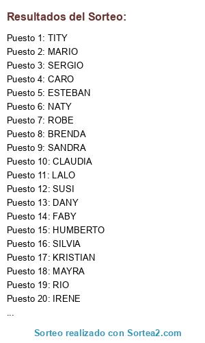 Resultados del sorteo: