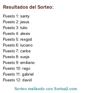 Resultados del sorteo:
