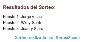 Lista de participantes: Lau y Jorge, Will y Santi, Siara y Juan.
