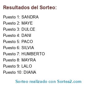 Lista de participantes: PACO, SANDRA, LALO, MAYE, DULCE, HUMBERTO, DANI, SILVIA, MAYRA, DIANA.