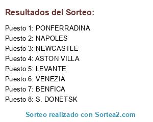 Lista de participantes: NEWCASTLE, LEVANTE, PONFERRADINA, BENFICA, VENEZIA, NAPOLES, S. DONETSK, ASTON VILLA.