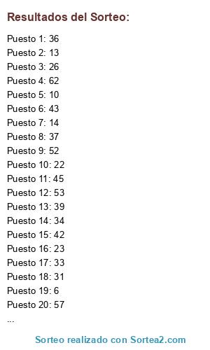 Lista de participantes: 1, 2, 3, 4, 5, 6, 7, 8, 9, 10, 11, 12, 13, 14, 15, 16, 17, 18, 19, 20, 21, 22, 23, 24, 25, 26, 27, 28, 29, 30, 31, 32, 33, 34, 35, 36, 37, 38, 39, 40, 41, 42, 43, 44, 45, 46, 47, 48, 49, 50, 51, 52, 53, 54, 55, 56, 57, 58, 59, 60, 61, 62, 63, 64.