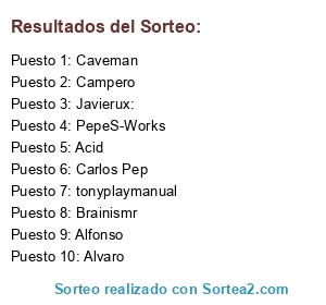 Lista de participantes: Alfonso, Alvaro, Carlos Pep, Acid, Caveman, tonyplaymanual, Campero, Brainismr, Javierux:, PepeS-Works.