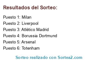 Lista de participantes: Atlético Madrid, Borussia Dortmund, Arsenal, Liverpool, Milan, Totenham.