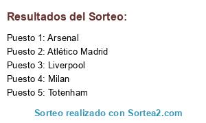 Lista de participantes: Atlético Madrid, Arsenal, Liverpool, Milan, Totenham.