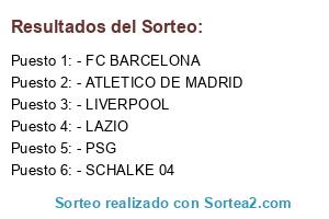 Lista de participantes: - ATLETICO DE MADRID, - LAZIO, - FC BARCELONA, - SCHALKE 04, - LIVERPOOL, - PSG.