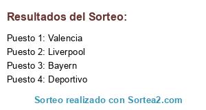 Lista de participantes: Deportivo, Liverpool, Bayern, Valencia.