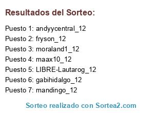 Lista de participantes: vasi23_12, punkguy_12, Razinger_12, maxy4267_12, maax10_12, mandingo_12, LauTTa_12, gustavom_12, centella_12, chapacba_12.