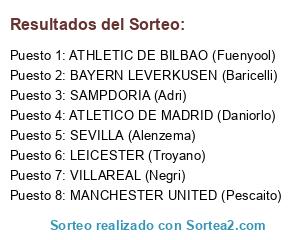 Lista de participantes: MILAN (Lincedeo), SEVILLA (Majeitor), ATLETICO DE MADRID (Daniorlo), SPARTAK MOSKU (Manuwatagata), BAYERN MUNICH (Cordubita), INTER DE MILAN (Luisixu), ATHLETIC DE BILBAO (Fuenyool), BOCA JUNIORS (Kefergas), NAPOLES (Jesure), SAINT- ETTIENE (Wakandu), BETIS (Baena), BESIKTAS (Estupeyonk), SAMPDORIA (Ramonelectrico), NEWCASTLE (Jordi).