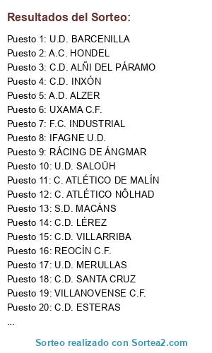 Lista de participantes: A.C. HONDEL, A.D. ALZER, A.D. BAYÉN, A.D. EXITAL, A.D. TERAL, A.D. TXELDIE, A.D. ZÁRRAGA, ATLÉTICO DE NAVAS, BÉLMAR C.F., C. ATLÉTICO DE MALÍN, C. ATLÉTICO NÔLHAD, C.A. LA LANZA, C.D. ALCALÁ CHICO, C.D. ALÑI DEL PÁRAMO, C.D. CALPE, C.D. CAMPIÑA, C.D. CAÜS, C.D. CIUDAD DE YOUG, C.D. EAS, C.D. ESTERAS, C.D. INXÓN, C.D. LAVA, C.D. LÉREZ, C.D. MARINO, C.D. MONTERBA, C.D. PEGASO, C.D. RIOJANO, C.D. RUEDA, C.D. SANTA CRUZ, C.D. VILLARRIBA, DEPORTIVO ABRIL, F.C. INDUSTRIAL, FRONTERA C.D., IFAGNE U.D., LOJA C.F., METRANO C.F., MORENA C.F., MORIA C.F., NOVALES C.F., PINTO ATHLETIC, POLI. CANALES, RÁCING DE ÁNGMAR, RÁCING DE CONOR, RÁCING DE UCEDE, REAL CASTILLO, REJAS U.D., REOCÍN C.F., S.D. ALSÚND, S.D. ASTILLERO, S.D. ETXIBE, S.D. MACÁNS, S.D. PEÑAFIEL, S.D. S. JUAN DEL NORTE, U. ATLÉTICO LINARES, U.D. BARCENILLA, U.D. EL CASAR, U.D. EL COLLAO, U.D. HINOJOSA, U.D. ISLAS RÍES, U.D. JERÓN, U.D. MERULLAS, U.D. PEÑALVA DE EMÉS, U.D. SALOÜH, U.D. SANTO TOMÁS, U.D. YALLÉN, UNI-HÓN C.F., UXAMA C.F., VILLANOVENSE C.F..
