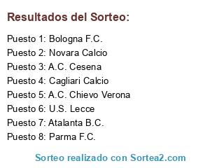 Lista de participantes: Parma F.C., Novara Calcio, U.S. Lecce, Bologna F.C., Cagliari Calcio, Atalanta B.C., A.C. Cesena, A.C. Chievo Verona.