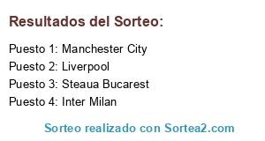 Lista de participantes: AC Milan, Arsenal, Athletic Bilbao, Atletico Madrid, Barcelona, Bayern Munich, Besiktas, Borussia Dortmund, Chelsea, Inter Milan, Liverpool, Manchester City, Manchester United, Napoles, Real Madrid, Sevilla, Steaua Bucarest, Valencia.