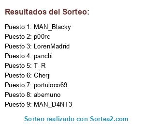 Lista de participantes: abemuno, MAN_D4NT3, Cherji, panchi, portuloco69, MAN_Blacky, T_R, LorenMadrid, p00rc.