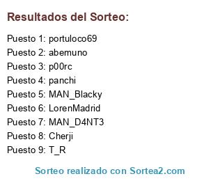 Lista de participantes: p00rc, LorenMadrid, MAN_Blacky, MAN_D4NT3, portuloco69, abemuno, T_R, panchi, Cherji.