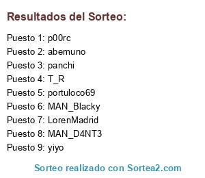 Lista de participantes: panchi, portuloco69, abemuno, LorenMadrid, T_R, MAN_Blacky, MAN_D4NT3, p00rc, yiyo.