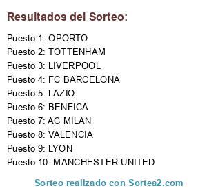 Lista de participantes: AC MILAN, FC BARCELONA, LIVERPOOL, MANCHESTER UNITED, LAZIO, VALENCIA, TOTTENHAM, LYON, BENFICA, OPORTO.