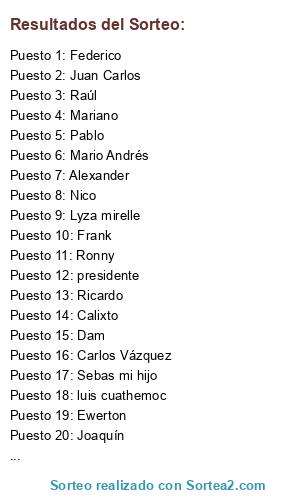 Resultados del sorteo: